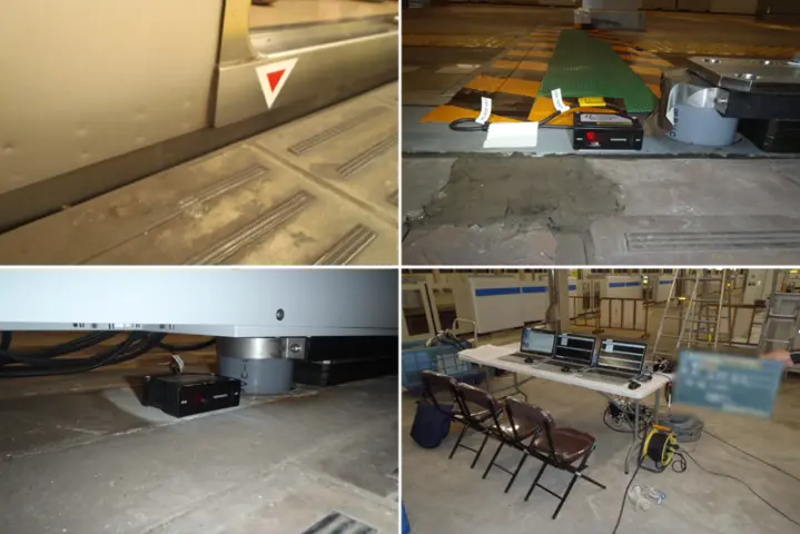ホーム改修に先立ち、列車の動的な挙動を把握するため、列車とホームの離隔を動的計測しました。